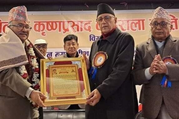 बिराटनगर / माघ ९ / पिताजी कृष्णप्रसाद कोइराला स्मृती परिषदले पूर्ब प्रधान न्यायाधिस कल्याण श्रेष्ठलाई सम्मान गरेको छ । श्रेष्ठलाई न्याय क्षेत्रमा रहेको बेला प्रजातान्त्रिक मूल्य, मान्यता र बिधिको शासन स्थापित गर्न पुर्याएको योगदानको उच्च मुल्यांकन गर्दै उक्त सम्मान गरिएको हो । बिराटनगरमा हिजो ९ गते सम्पन्न एक भब्य समारोहका बीच श्रेष्ठलाई नेपाली काङ्ग्रेसका बरिष्ठ नेता डा. शेखर कोइराला र परिषदका अध्यक्ष प्रा. कबिराज नेउपानेले संयुक्त रुपमा सम्मान गर्नु भएको हो ।