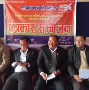बिराटनगर / पुस २९ / नेपाल कम्युनिस्ट पार्टी, किरात-लिम्बुवान प्रदेश समितिले “कोशी” नाम परिबर्तन गरि “किरात-लिम्बुवान” राख्नुपर्ने बताएको छ । यही पुस २२ र २३ गते धरानमा सम्पन्न पार्टीको बैठकको निर्णय सार्बजनिक गर्न आज बिराटनगरमा आयोजित पत्रकार सम्मेलनमा जानकारी दिदै उक्त जानकारी दिइएको हो । बैठकले “साम्राज्यबाद र दलाल पुजीबादका बिरुद्ध दृढतापुर्बक मोर्चा खडा गरौ […]