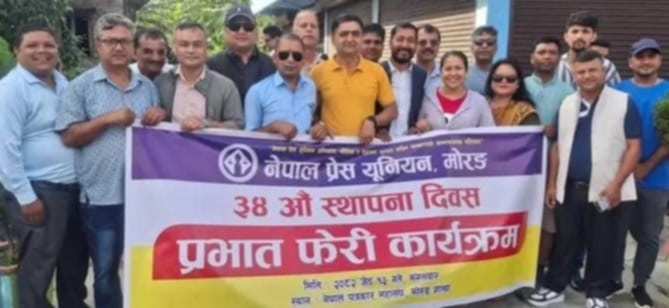 बिराटनगर / जेठ १३ / नेपाल प्रेस युनियनको ३४ औ स्थापना दिबसको उपलक्षमा आज प्रभातफेरीको आयोजना गरियो ।